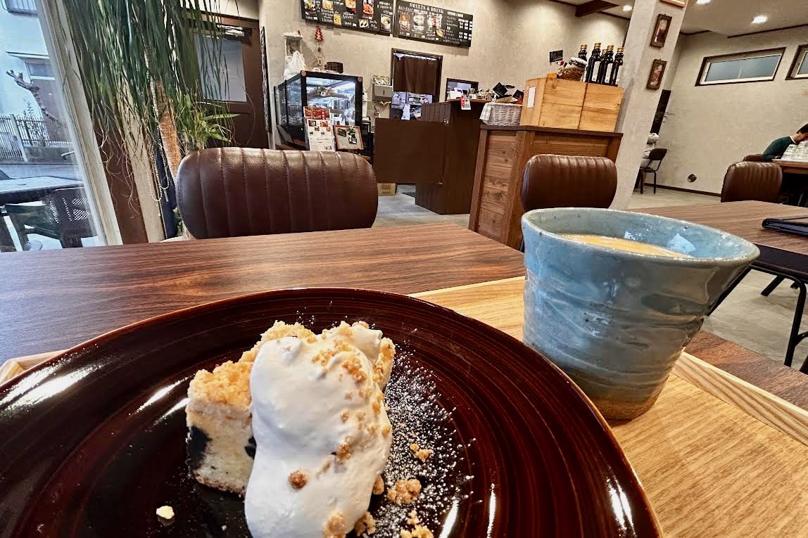 この日私がいただいたのは、ザクザクした食感を味わえるチョコチップクッキーのケーキとコーヒーのセット。