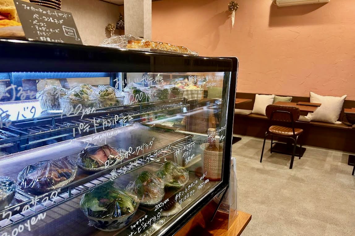 黒板には限定メニューや、お店自慢の地元食材を使った「飯能フォカッチャ」が! ガラスケースから自分で選べるのが楽しいのです♪