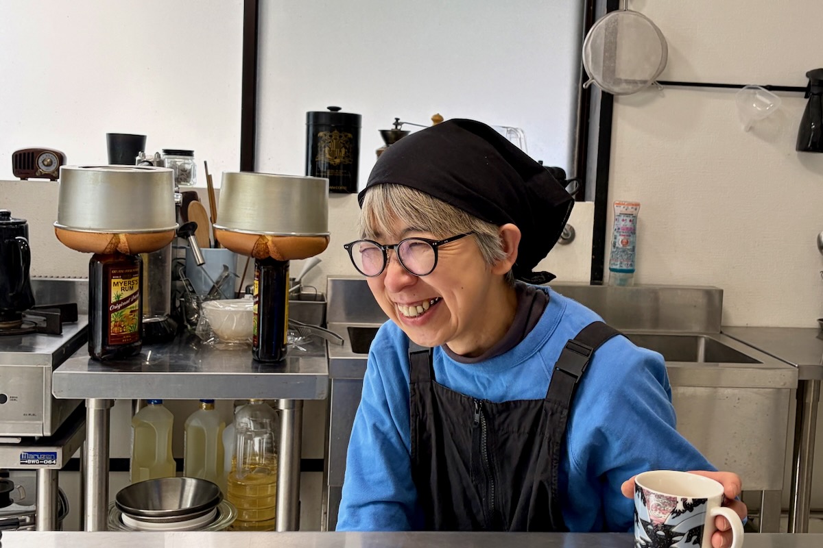 営業前のカフェのキッチンでデザートをつくっていた山縣さん。朝早すぎて暗くて嫌だなと思い、自宅の空き部屋を改装することを思いついて実行。