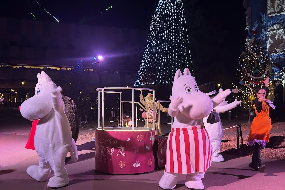 ムーミン屋敷の前では、新たなショー『ムーミン谷のルミナスナイトショー〜クリスマスってなんだろう?〜』を上演。