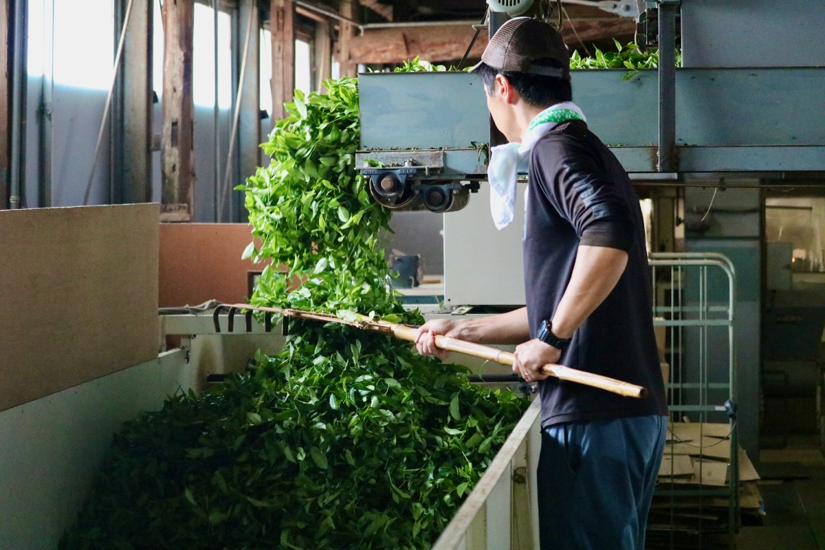 摘みたての茶葉は、2週間以内に荒茶(あらちゃ:中間製品)に仕上げなければなりません。気温や湿度の変化に対応するため、製造は夜通し続くこともあります。